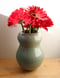 A fluid, organic silhouette with a flood of celadon glaze enveloping the form. Can easily hold a medium-to-large bouquet of flowers.