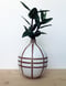 Stout and modern white vase, with bold, lantern graphic decoration.